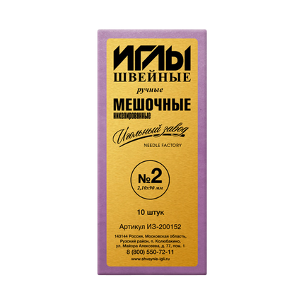 Иглы швейные ручные мешочные никелированные №2 ИЗ-200152 "Игольный завод"