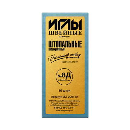 Иглы швейные ручные штопальные №8д ИЗ-200140 "Игольный завод"